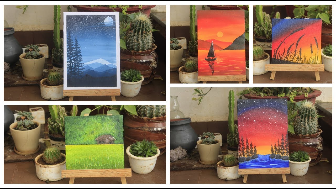 acrylic easy painting landscape canvas beginner tutorial tiny