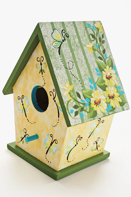 birdhouse painted bird painting birdhouses craft houses butterfly diy daisy feeder decorative paintings tole birds crafts daisies fun project