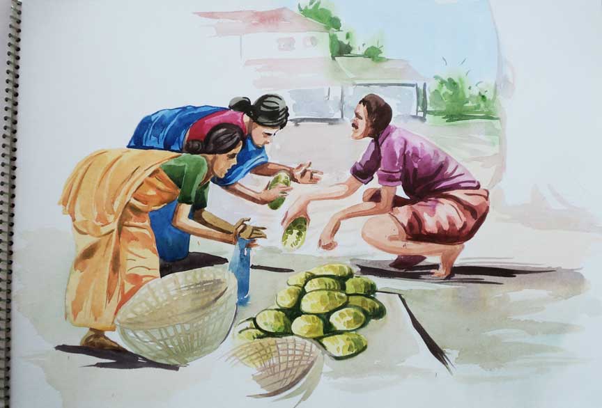 market drawing watercolor paintings painting figure colour indian drawings composition human sketch landscape canvas nature watercolors beginners madeline mauritius marche