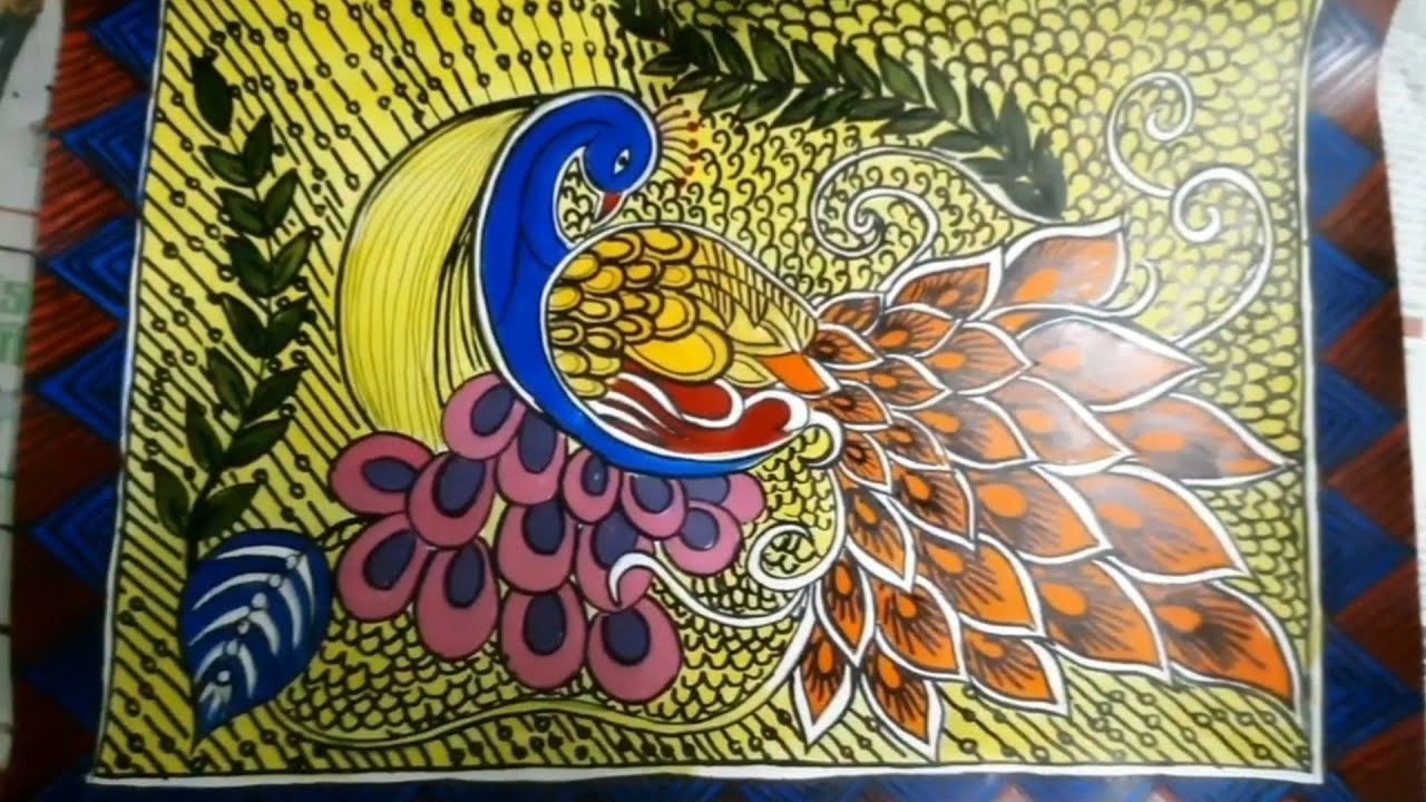 indian madhubani paintings folk painting canvas famous peacock village easy mithila fine belle woman india mural artwork colours uses draw