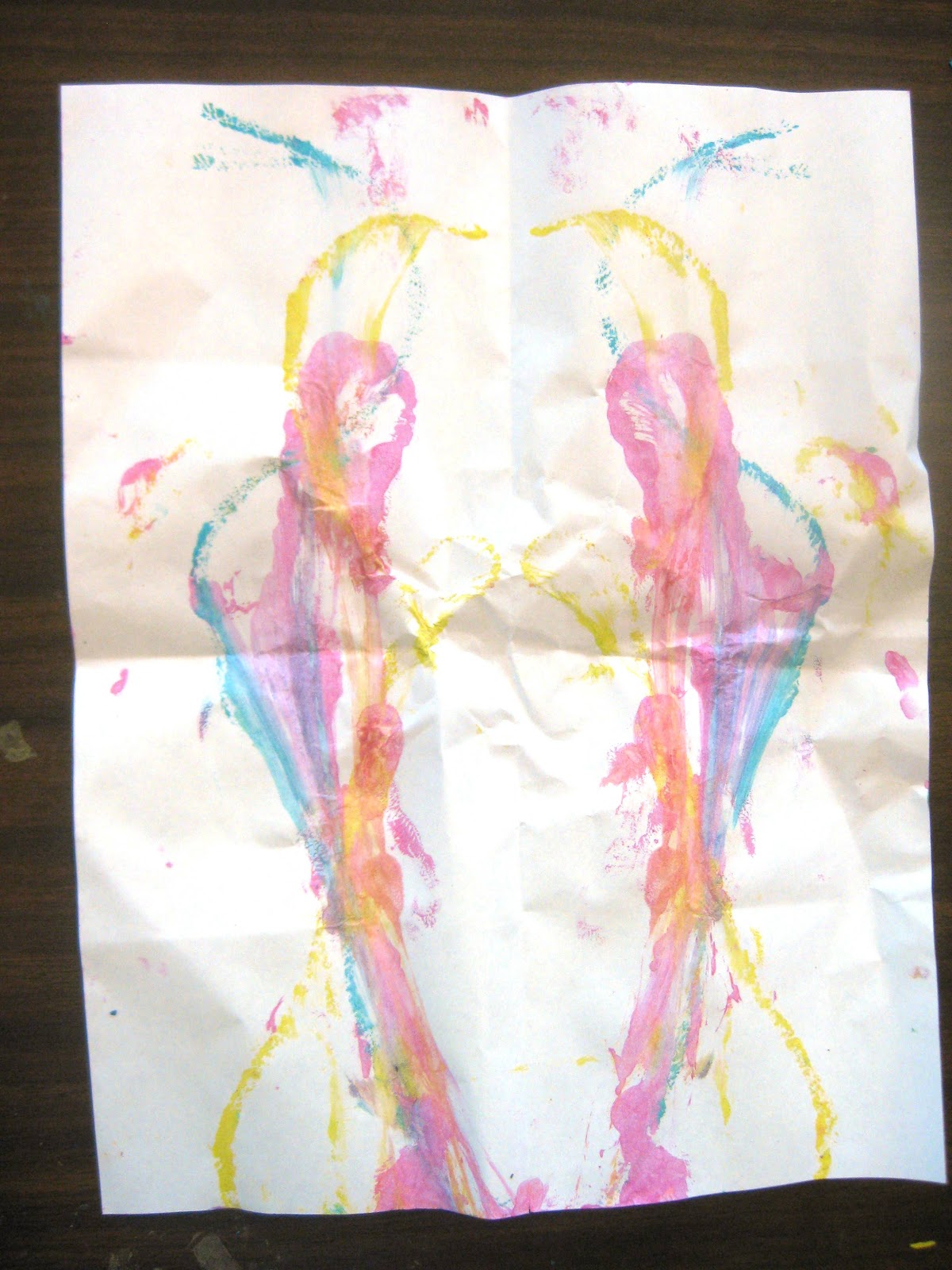 string painting preschoolers paint paper preschool fold half measure cut