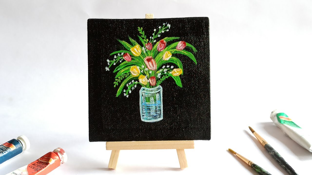 painting acrylic canvas easy tulip step tutorial beginners